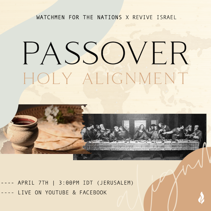 We believe the Lord is setting up the most glorious Passover moment in history since He offered up His very life on the cross. So, we would like to invite you to join us this Tuesday, April 7th, as we participate with the global Body of Christ in an online communion service at Watchmen For The Nations. This online gathering of both Jews and Gentiles will begin at 3pm in Jerusalem, which is 8am Eastern Standard Time. Please feel free to share this opportunity with your family and friends.